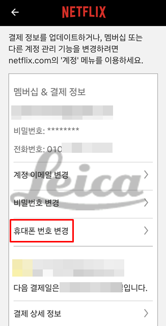 3. [휴대폰 번호 변경 메뉴를 클릭합니다.